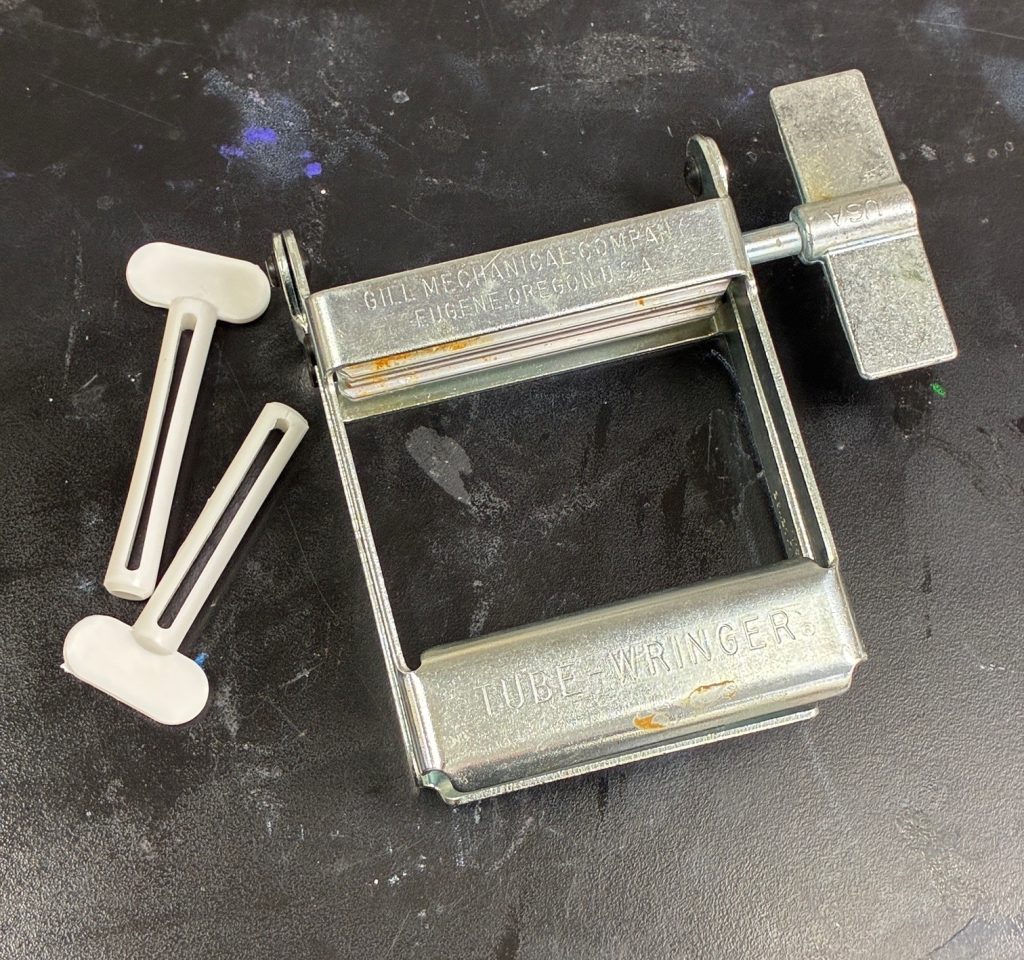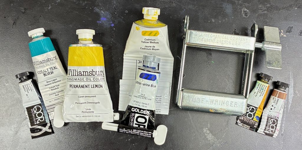 After closing, squeeze and flatten your tube from the crimp up. The goal is to push all the paint forward toward the cap. Air pockets are the enemy; they let oxygen sneak in and dry out your paint. Tube wringers and keys work beautifully for this. Aluminum holds its form, so once it’s crimped, it stays that way—just don’t fold it back and forth in the same spot or you’ll end up with a pinhole leak and a very colorful mess.
