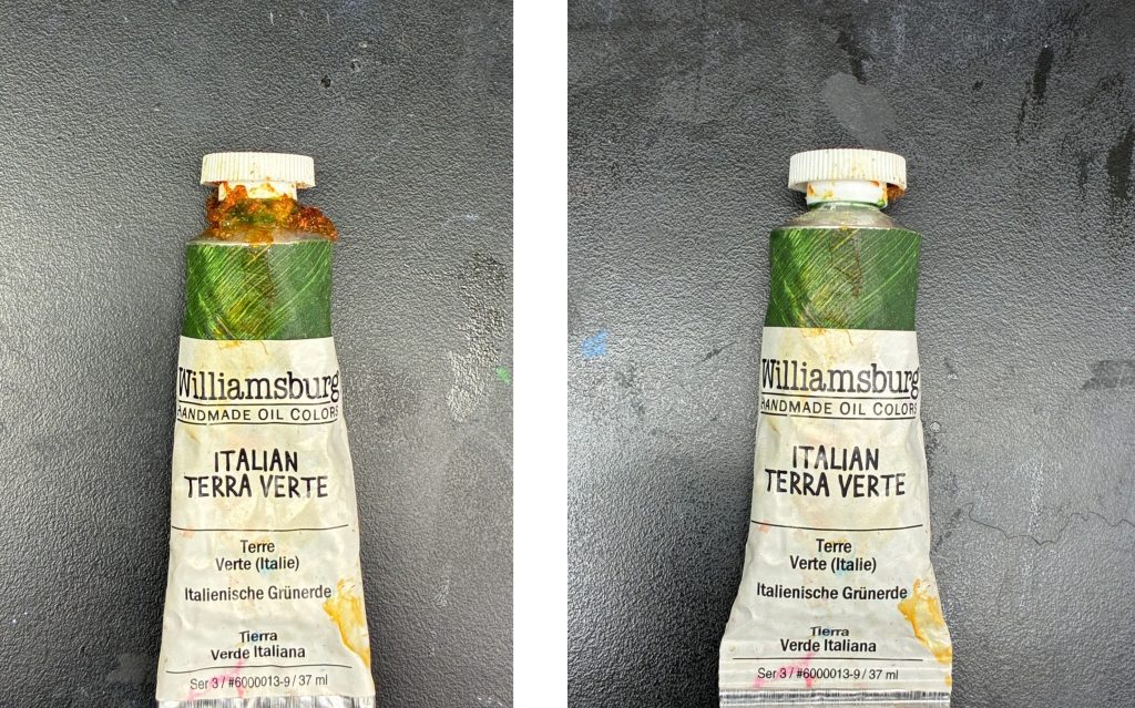 - Push paint forward and crimp the tail. Tubes breathe—don’t give them air pockets to dry out in.